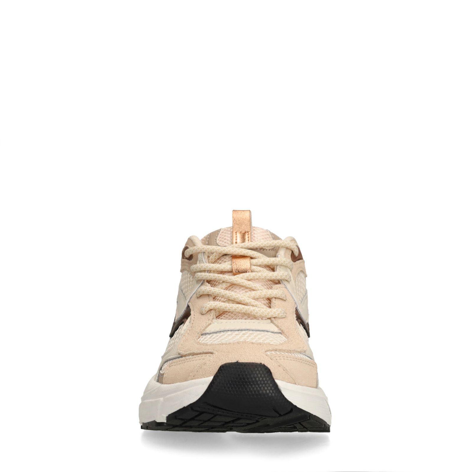 Beige mesh sneakers van Manfield met leren bruine en bronzen details. De sneakers hebben een witte plateauzool van 4 cm en suède en mesh details over de schoen heen lopen. We adviseren als bescherming en verzorging de Collonil Carbon pro.