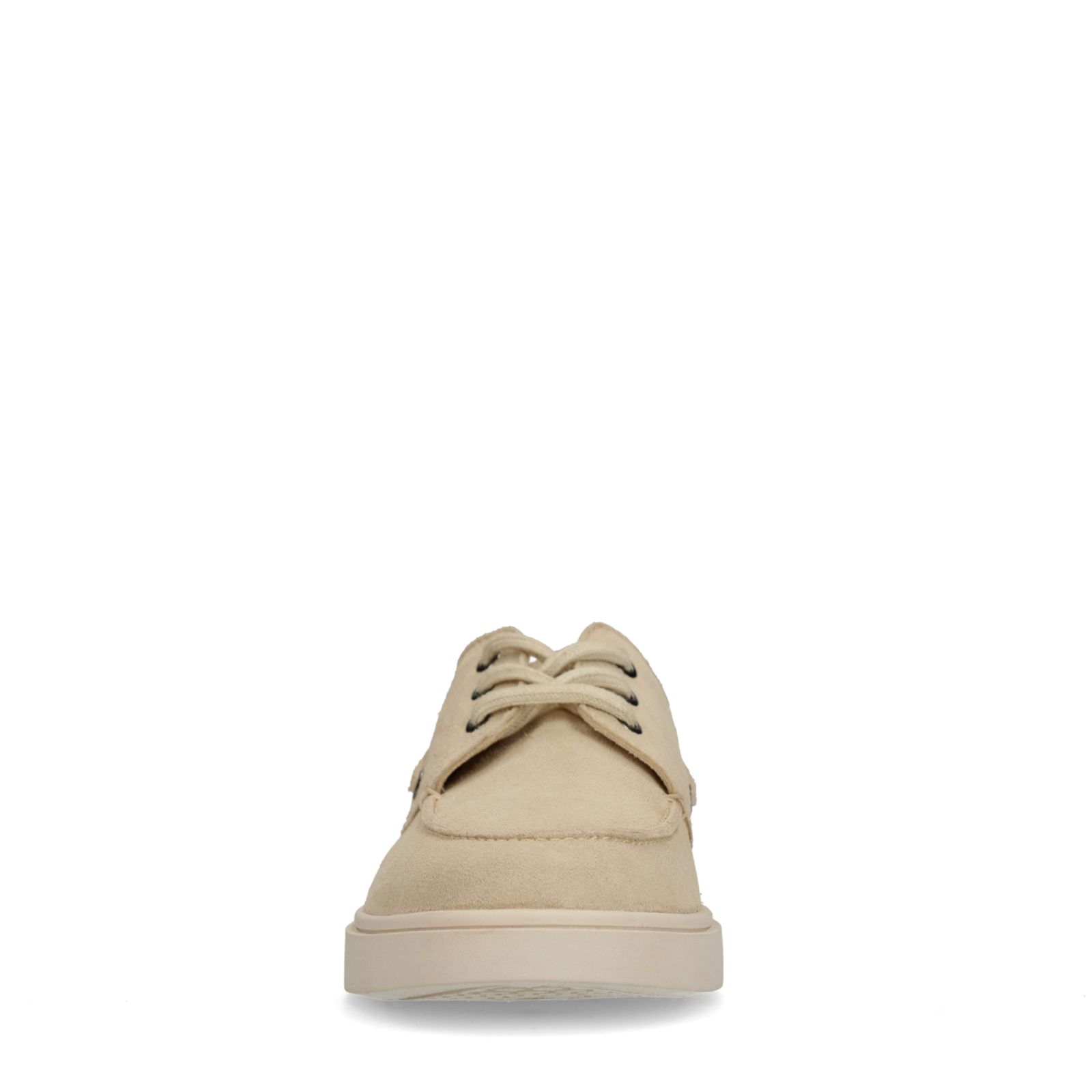 Beige suède bootschoenen van Manfield met witte zool van 3 cm. We adviseren als verzorging en bescherming de suède/nubuck spray in transparant.