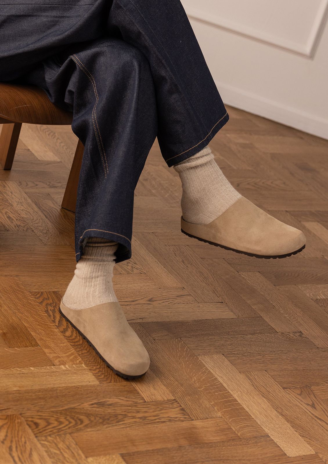 Beige suède instappers