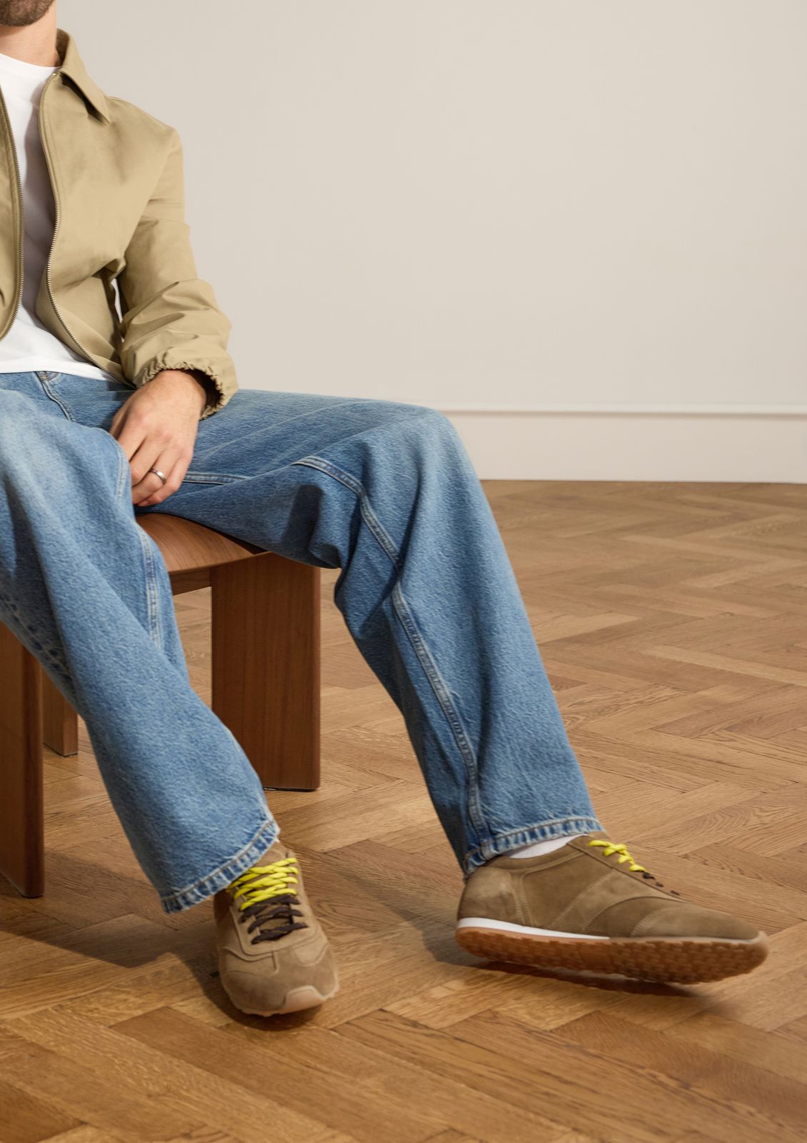 Beige suède sneakers met dubbele veters van Manfield. Deze sneakers hebben een platte zool van 1 cm. Hiernaast hebben de sneakers twee kleuren veters voor een afwisselend effect. We adviseren als bescherming en verzorging de suède/ nubuck spray in transparant.