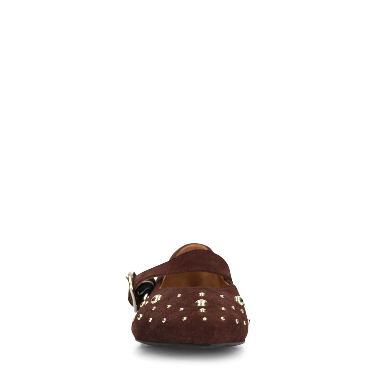 Bordeaux rode suède loafers met goudkleurige studs van Manfield. De loafers hebben een puntige neus, een lage hak van 1 cm en een gespsluiting die over de voorvoet loopt. We adviseren als verzorging en bescherming de suède/nubuck spray in transparant.