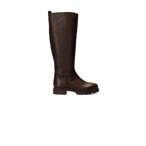 Bruine leren hoge laarzen van Manfield met snakedetails op de achterzijde, een ritssluiting aan de binnenzijde en een platte hak van 3 cm. De laarzen hebben een schachthoogte van 40 cm en een schachtomtrek van 40 cm, gemeten bij een maat 37. We adviseren als verzorging en bescherming de Collonil Carbon Pro.