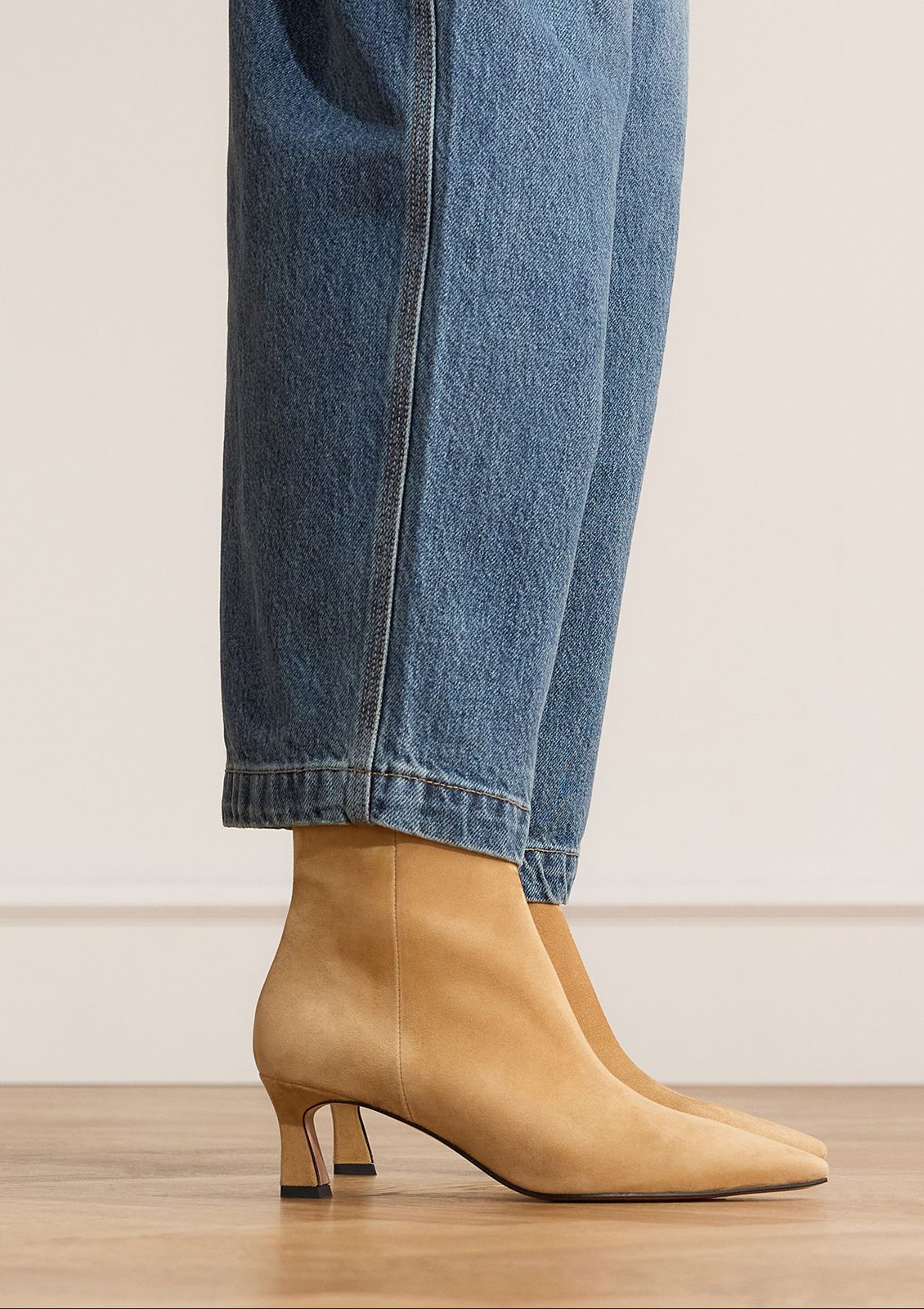Cognac suède enkellaarsjes met hak