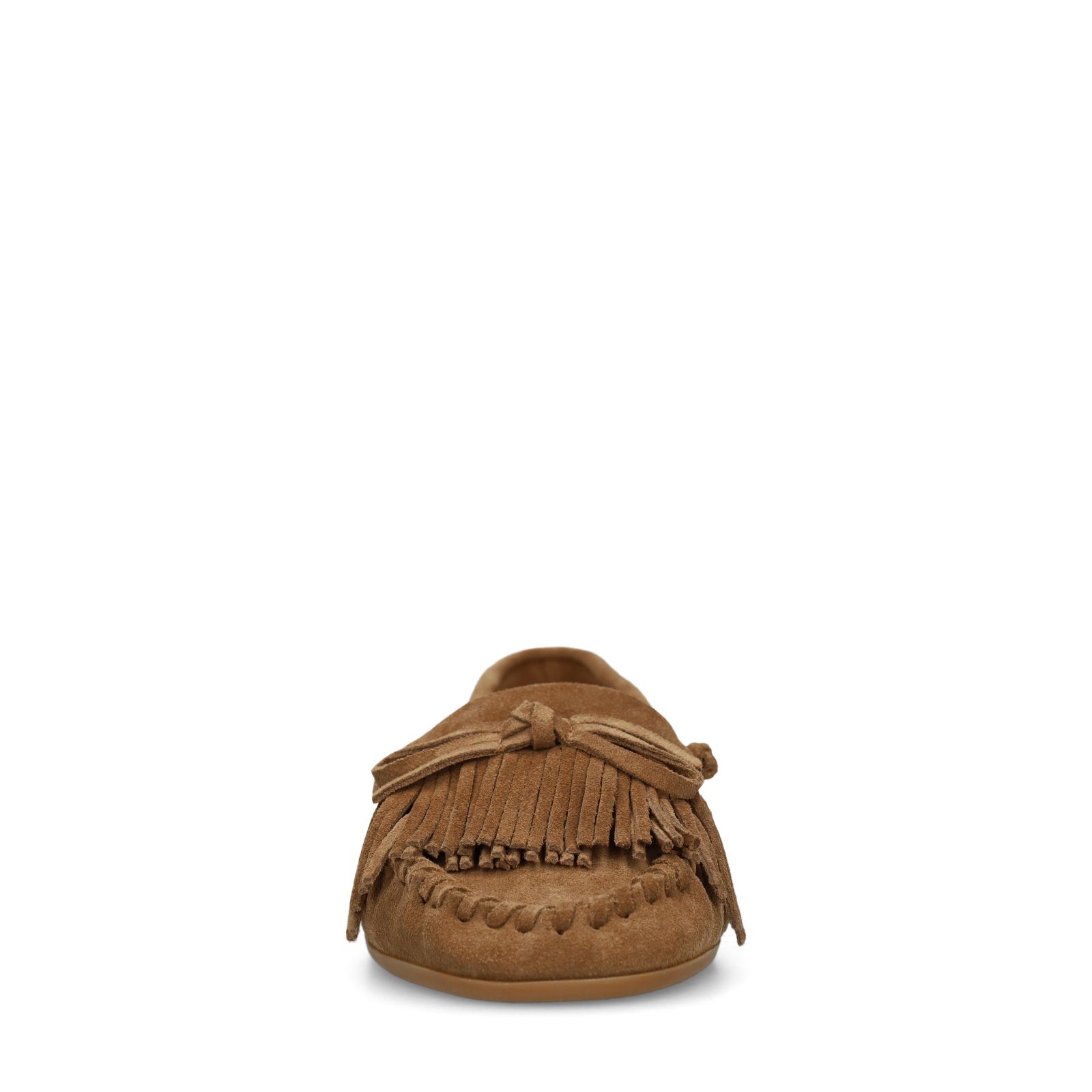 Cognac suède loafers met franjes van Manfield. De instappers hebben een rubberen zool van 1 cm en een strik detail op de voorvoet en gestikte details aan de zijkant. We adviseren als verzorging en bescherming de suède/nubuck spray in transparant.