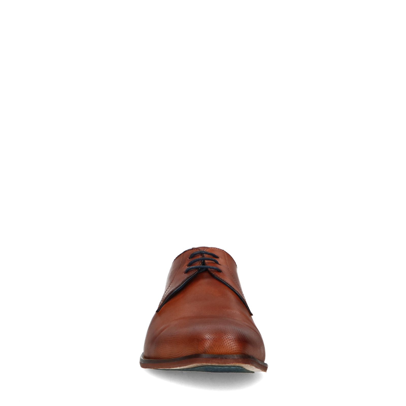 Cognac veterschoenen van het merk Manfield. De veterschoenen hebben een binnen- en buitenzijde van leer voor een heerlijke pasvorm. De cognac kleur laat zich eenvoudig combineren onder iedere outfit. Bijzonder aan dit model zijn de stiksels en subtiele details aan de neus en hiel van de schoen.
