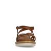Cognac leren sandalen met bandjes van het merk No Stress. De sandalen hebben een memory foam voetbed, hak van 4 cm en gespsluiting rondom de enkels. We adviseren als verzorging en bescherming de Collonil Carbon Pro.
