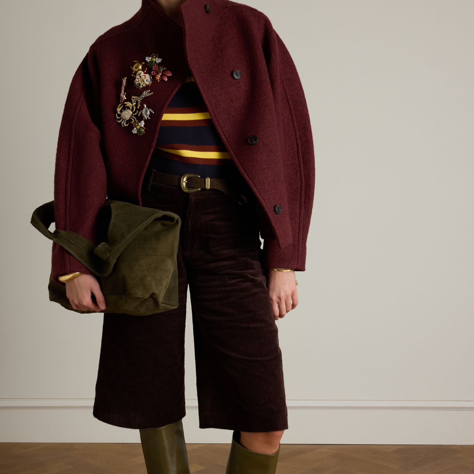 Donkergroene suède shopper van Manfield. De afmeting van deze tas is 60x34x20 cm (BxHxD), voorzien van een zij vak aan de binnenzijde met ritssluiting. We adviseren als verzorging en bescherming de suède/nubuck spray in transparant.