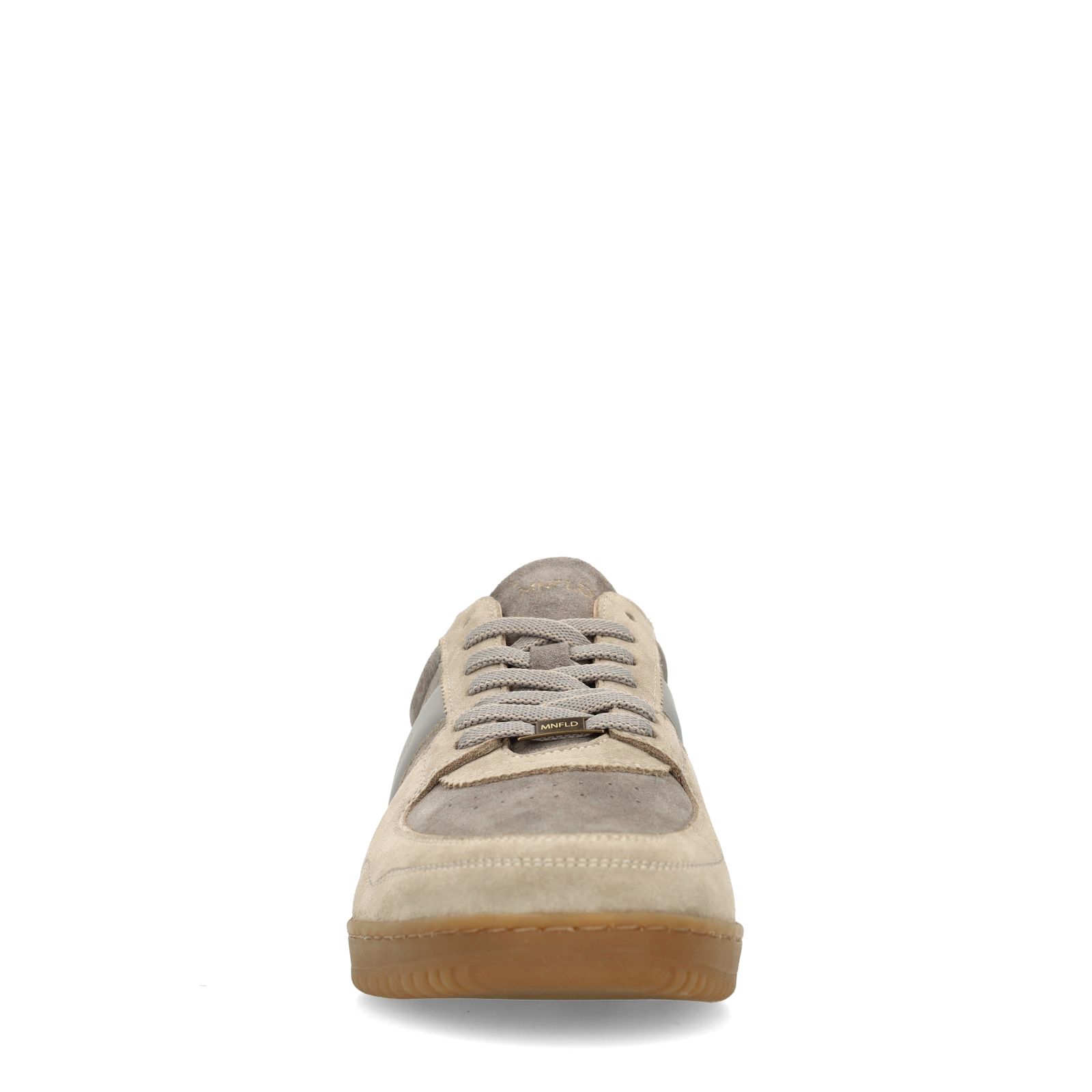 Grijze suède sneakers van Manfield met grijze leren details. Sneakers hebben een zool van 2 cm, beige details en witte leren achterzijde. We adviseren als verzorging en bescherming de suède/nubuck spray in transparant.