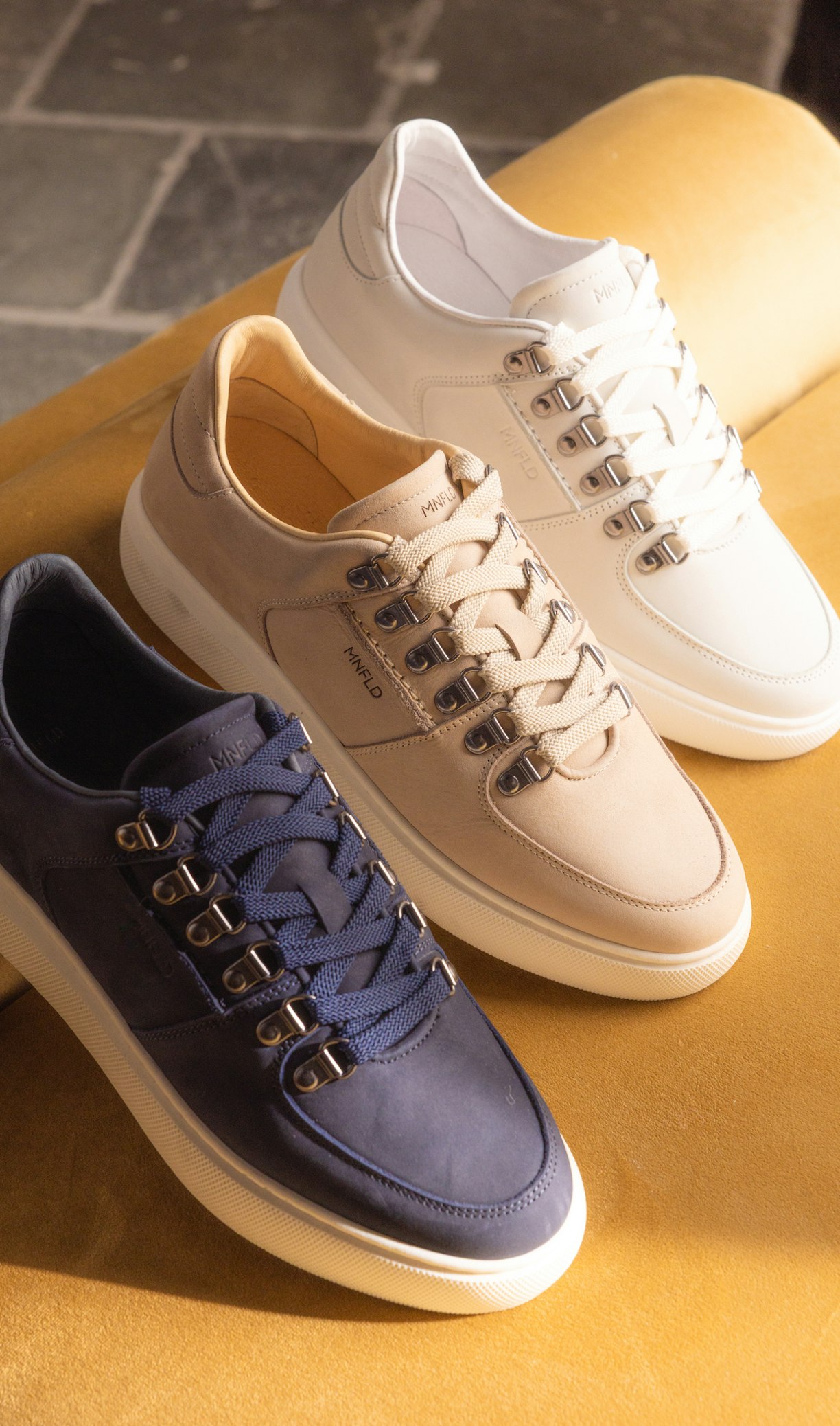 In de nieuwe collectie sneakers van Manfield zie je vooral veel minimalistische sneakers terug. De gympen zijn gemaakt van de materialen leer, nubuck en suéde. Zwart, bruin, grijs, wit, donkergroen en blauw zijn kleuren die je vaak terug ziet komen in de nieuwe collectie sneakers van Manfield. Dit zijn kleuren die je moeiteloos met al je favoriete outfits kan combineren! Heren sneakers zijn afgeleid van sportschoenen en daarom is een hoog loopcomfort essentieel bij deze schoenen. Naast een heerlijk voetbed is de zool voorzien van een fijne demping, ideaal wanneer je veel moet lopen tijdens een wandeling of een citytrip. Ben je op zoek naar dé ultieme heren sneakers waar je uren op kan lopen? Bekijk dan de collectie van het merk No Stress eens. Het voetbed van de No Stress sneakers zijn voorzien van memory foam, wat zorgt voor een erg hoog draagcomfort.