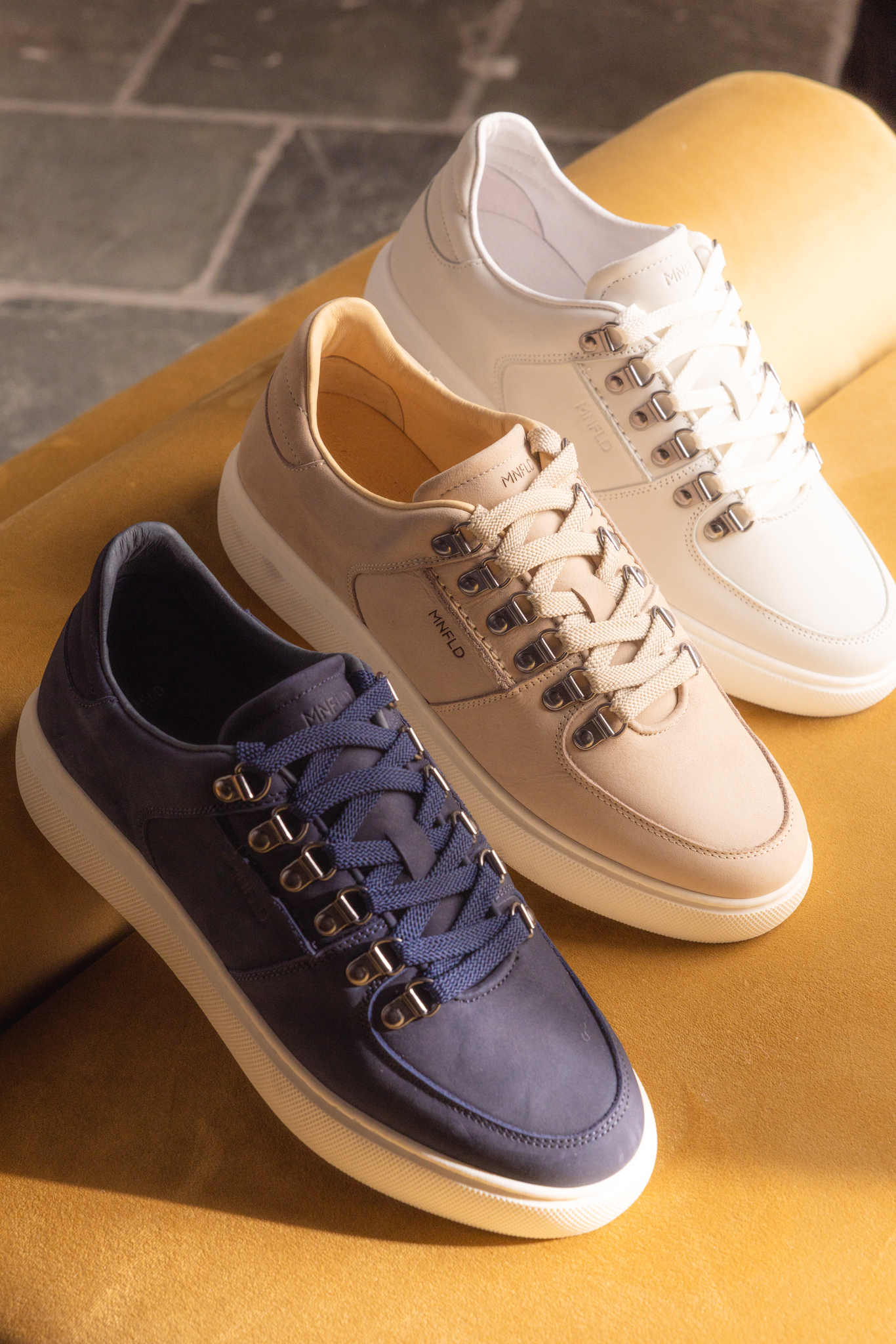In de nieuwe collectie sneakers van Manfield zie je vooral veel minimalistische sneakers terug. De gympen zijn gemaakt van de materialen leer, nubuck en suéde. Zwart, bruin, grijs, wit, donkergroen en blauw zijn kleuren die je vaak terug ziet komen in de nieuwe collectie sneakers van Manfield. Dit zijn kleuren die je moeiteloos met al je favoriete outfits kan combineren! Heren sneakers zijn afgeleid van sportschoenen en daarom is een hoog loopcomfort essentieel bij deze schoenen. Naast een heerlijk voetbed is de zool voorzien van een fijne demping, ideaal wanneer je veel moet lopen tijdens een wandeling of een citytrip. Ben je op zoek naar dé ultieme heren sneakers waar je uren op kan lopen? Bekijk dan de collectie van het merk No Stress eens. Het voetbed van de No Stress sneakers zijn voorzien van memory foam, wat zorgt voor een erg hoog draagcomfort.