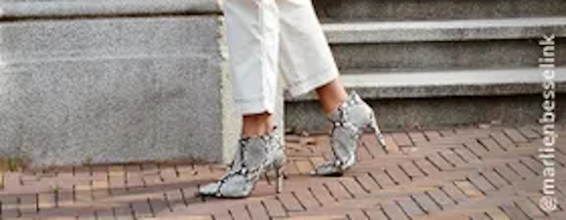Een tweedelig pak is super trendy. Dit heeft iets weg van de klassieke kantoorlook, maar als je kiest voor een pak met een mooi printje geef je een speelse twist aan je outfit. Ga voor een ruitjespatroon, streepjes, stipjes of een subtiel bloemenprintje. Tip: wil je je benen extra lang laten lijken? Kies dan voor een flared broek en draag hier enkellaarsjes met hak onder. Laarsjes met een spitse neus in combinatie met een flared jeans staan gegarandeerd voor succes.