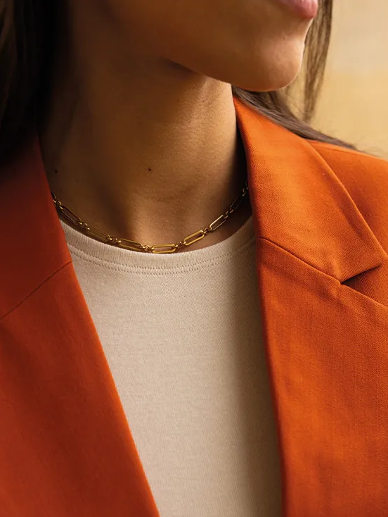 Een voorbeeld van een passende outfit voor op de werkvloer, die perfect samengaat met cowboylaarzen is het combineren van een tweedelig oversized oranje pak met gouden western boots. Deze look straalt zelfvertrouwen uit en de cowboylaarzen voegen een vleugje glamour en flair toe. Om het geheel af te maken voegen we de groene oorbellen van onze collectie toe. Zo laat jij een blijvende indruk achter!