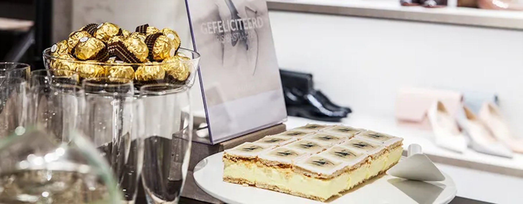 Daarnaast moesten er natuurlijk prachtige schoenen onder de jurk komen. Je krijgt allerlei adviezen, maar het meest belangrijke is toch wel dat ik schoenen zou aanschaffen die vooral lekker zitten. Ik trouw in de bossen en bij de locatie is bijvoorbeeld een kiezelpad, best een lastige opgave… Na het passen bij Manfield van de originele trouwpumps, gewone pumps, sandalen met hak en sleehakken ben ik uiteindelijk voor een elegante pump van Clarks gegaan. Deze heeft een open neus en de kleur taupe staat perfect onder mijn jurk. Ze zitten erg comfortabel, ik kan er goed op lopen en ik zou ze later eventueel nog een keer kunnen dragen zodat ik herinnerd word aan de grote dag. Ze bieden wat extra stevigheid door de wat bredere hak, zodat ik niet helemaal wegzak in het gras en zand.