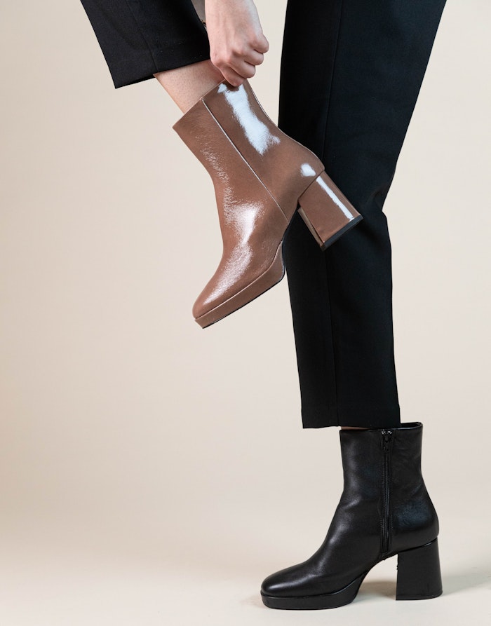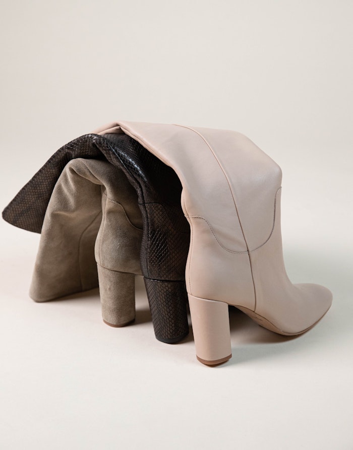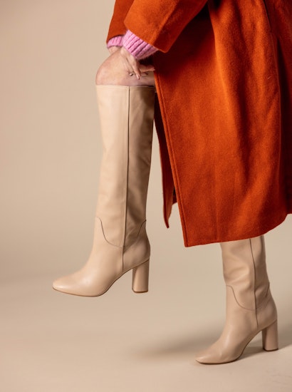 1. Kies voor een smalle neus, zoals puntige neuzen en afgeronde neuzen. Deze helpen om de breedte van de voeten te verminderen. Ga voor onze enkellaarsjes met hak en ronde afwerking in de neus of hoge laarzen met een puntige neus.