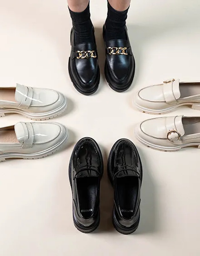 1. Te kiezen voor een bredere neus. Zoals bijvoorbeeld een ronde, platte of carré neus om de breedte van de voet visueel te vergroten. Ga voor sneakers of loafers met een brede neus!