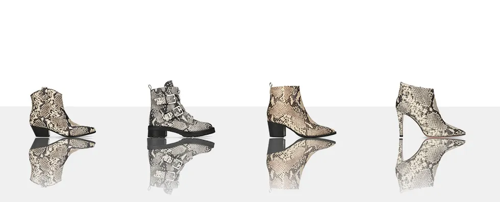 Less is more wat betreft je outfit als je een paar snakeskin schoenen draagt. Zo'n paar in het oog springende schoenen is de perfecte keuze om een basic outfit nét dat beetje extra te geven. Combineer de slangenprint laarsjes daarom dit najaar met een zwarte jeans en een oversized teddy of camel coat.