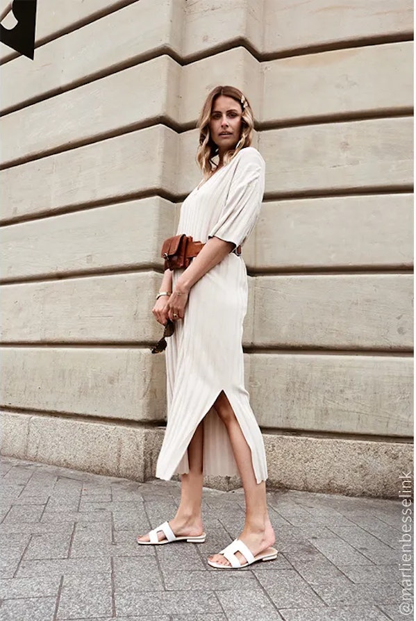 Investeer in een mooi paar leren slippers en je zult er gegarandeerd plezier van hebben. Voor een casual look staan leren slippers, bijvoorbeeld in de kleur wit, prachtig onder een lange jurk of rok. Zelfs met een jeans staan slippers fantastisch. Kies voor een witte jeans of een lichte denim.