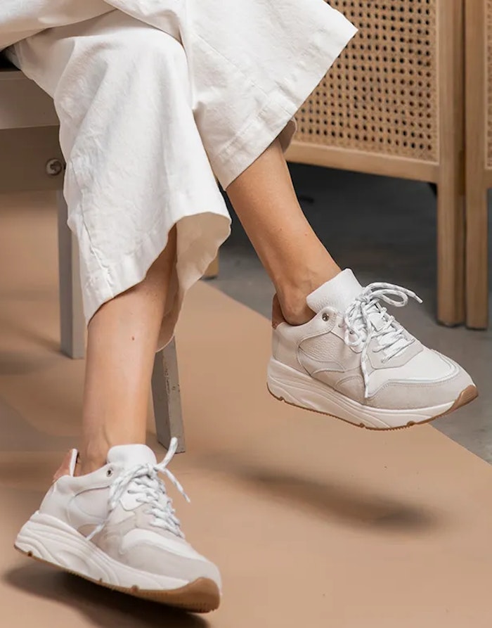 Maar sneakers hoeven niet altijd gecombineerd te worden met een nette pantalon en een chique colbert. Combineer ze ook zeker niet met een chic pak omdat het contrast dan te groot wordt. Draag ze juist onder een lange jurk of een midi rok met een elegante blouse die wat losser valt. Hierdoor maak je je outfit nét wat speelser. En dat mag zeker, zolang er maar geen afbreuk wordt gedaan aan de professionele uitstraling.