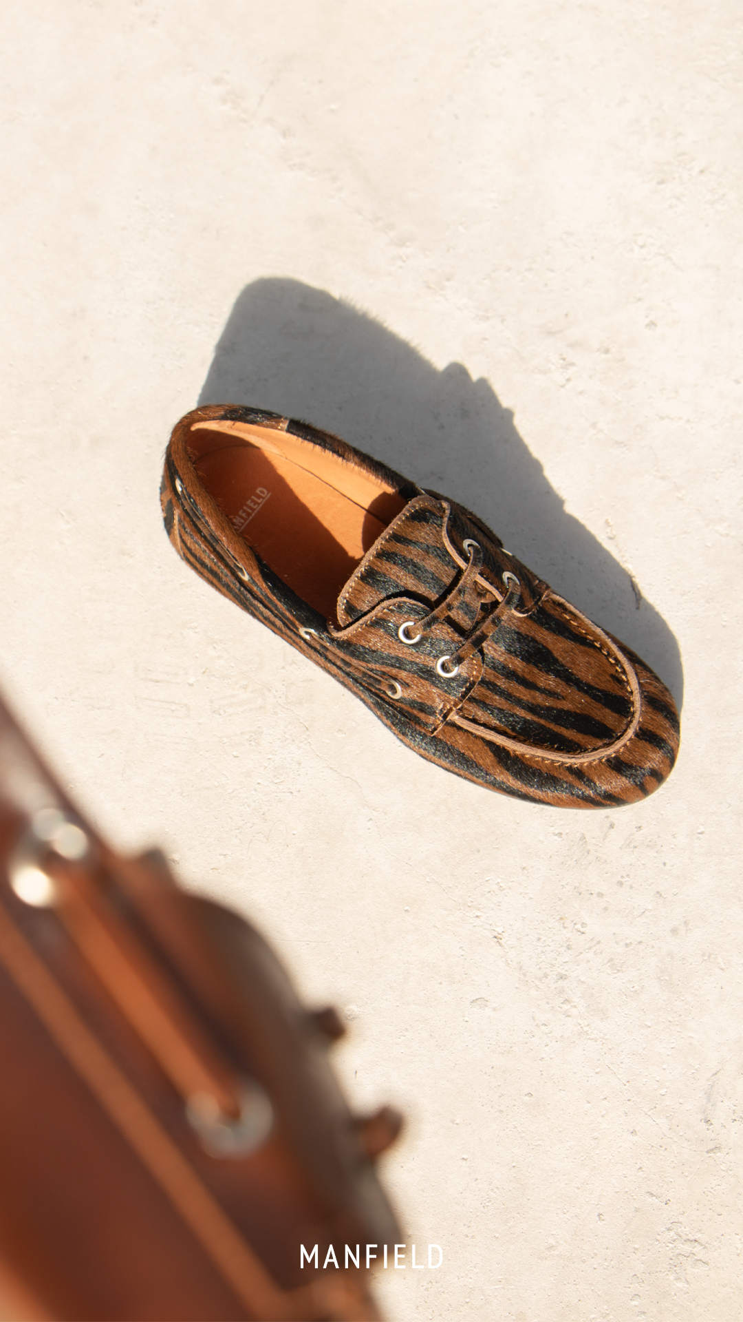 Niets zegt zomer zoals een paar espadrilles — en in suède worden ze ineens een stuk eleganter. Denk aan warm bordeaux, beige of cognac, gecombineerd met natuurlijke materialen zoals jute of raffia. De suède espadrille straalt relaxed sophistication uit en is jouw go-to voor alles van stranddagen tot dinerdates. Draag ze met een maxi-jurk of een cropped jeans voor een effortless look. Meer fan van mooie loafers? Klassieke loafers zijn altijd een goede keus voor een stijlvolle zomer look. Favoriet van de Manfield designers? De cognag suède loafers met zilveren details en de leopard loafers met gouden chain.