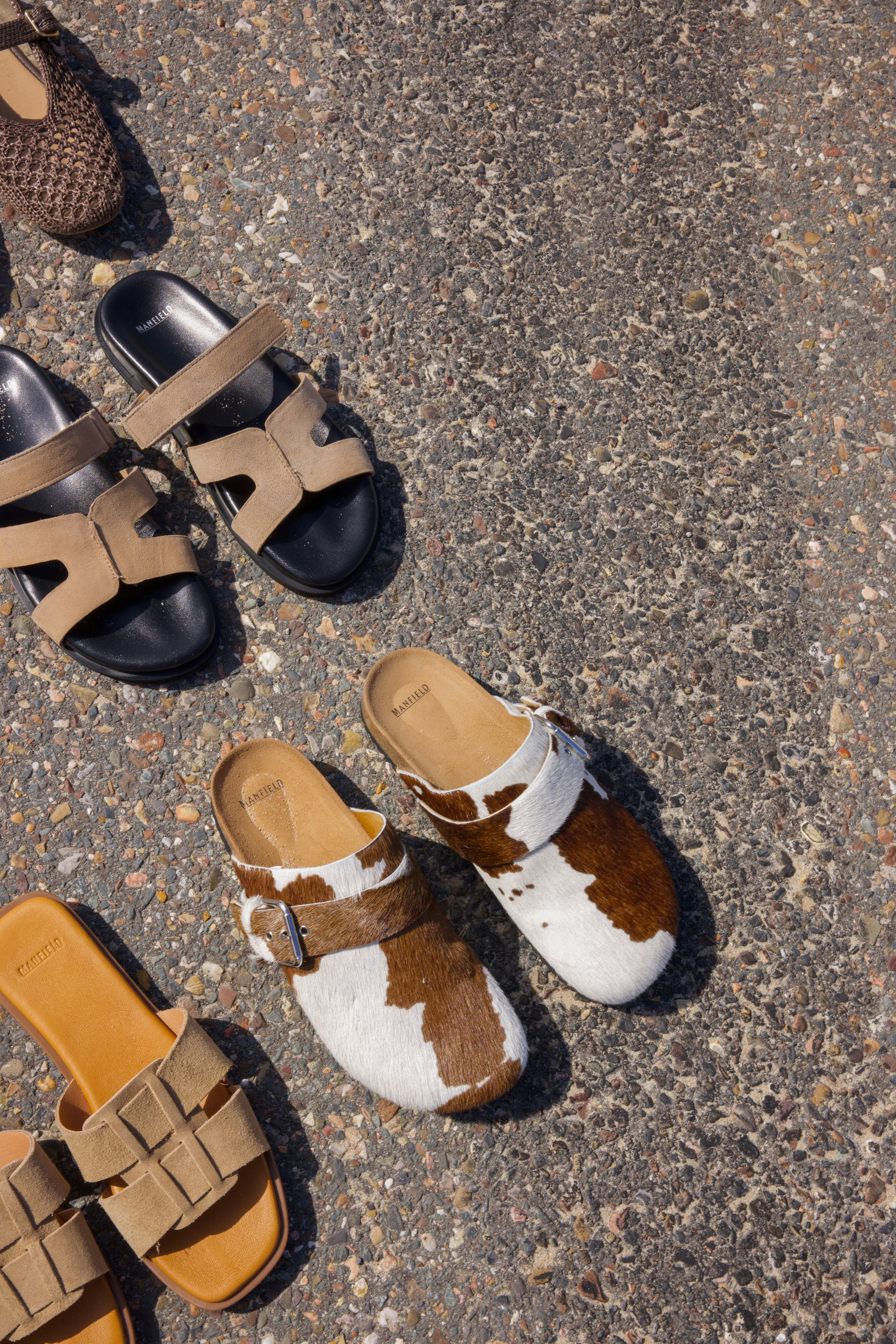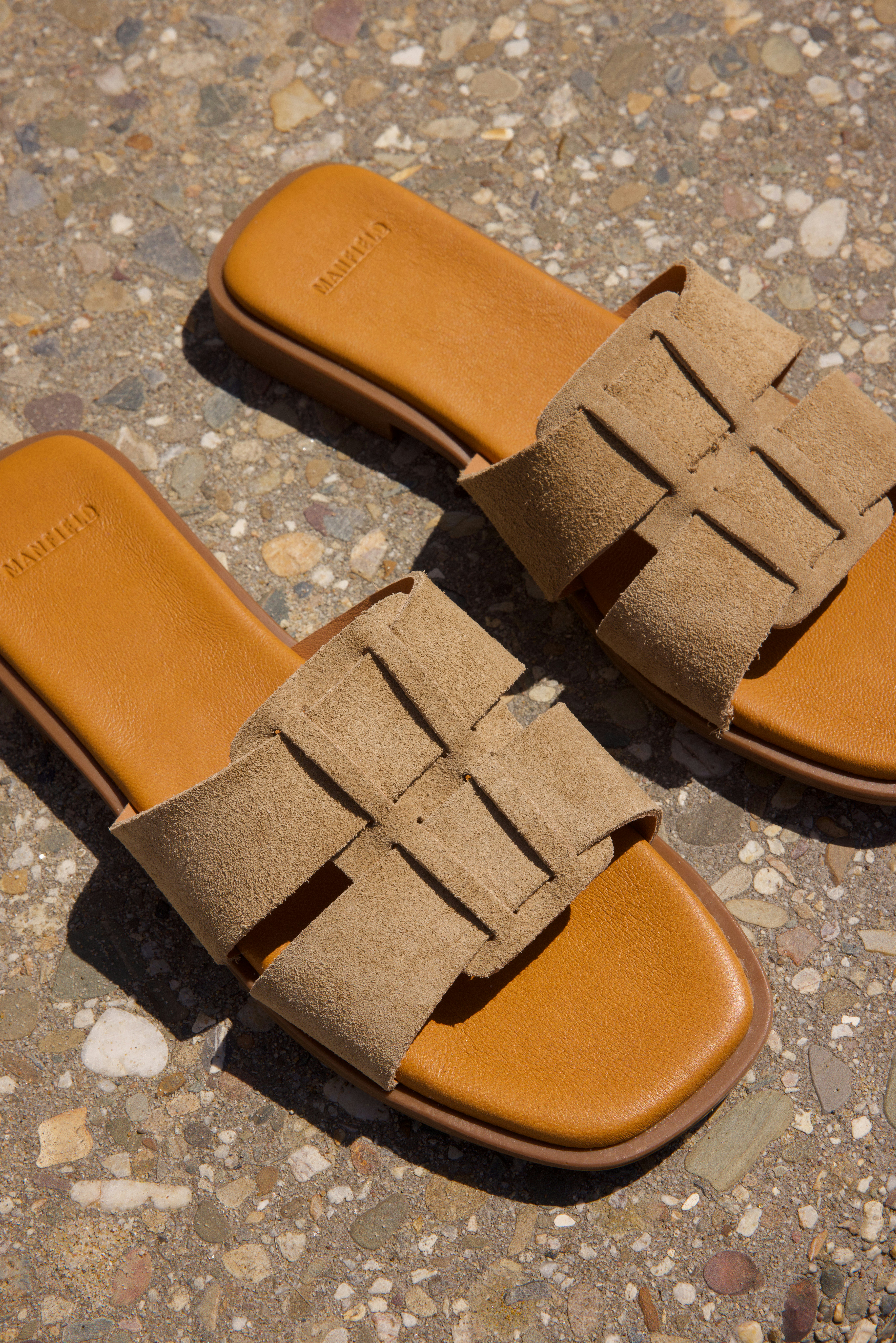 Deze zomer zijn de slippers en sandalen van Manfield niet alleen comfortabel, maar ook chic en stijlvol dankzij de suède materialen in verschillende stijlen. Het zachte materiaal geeft de minimalistische slippers en sandalen een verfijnde uitstraling. Denk aan subtiele bandjes of een wat stoerder model met gespen. Naast neutrale aarde tinten worden door suède liefhebbers de sandalen en slippers deze zomer ook graag gedragen in felle kleuren zoals rood, roze en geel. Hiernaast zijn suède clogs ook de perfecte slip-ons voor een zomerse outfit met een speelse toevoeging.