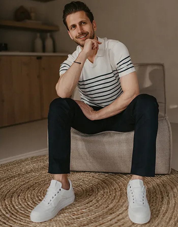 Heerlijk op vakantie?Draag de comfortabele sandalen in de zomer onder een korte chino, in combinatie met een linnen blouse.