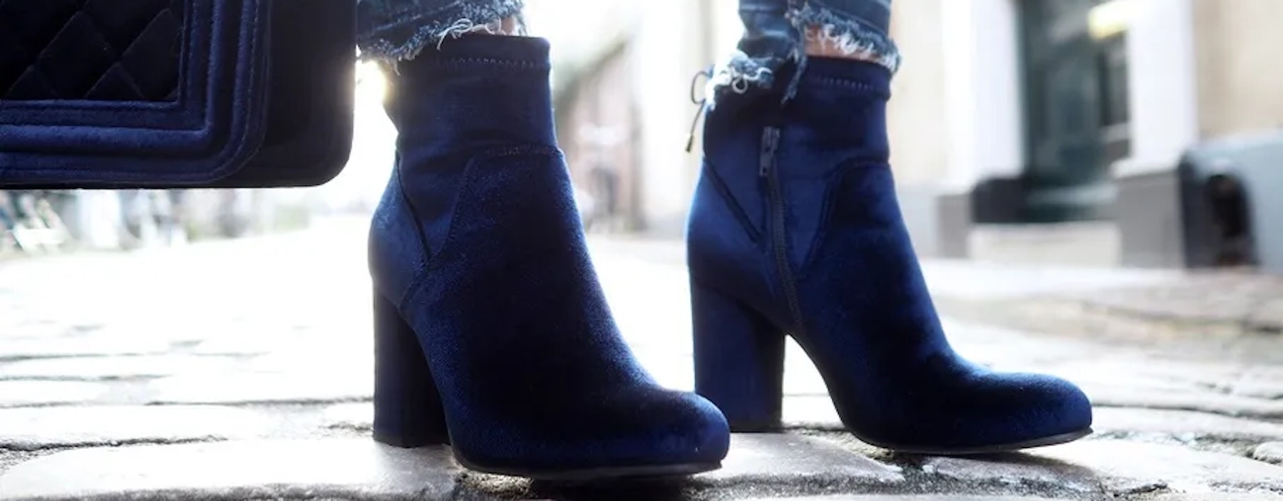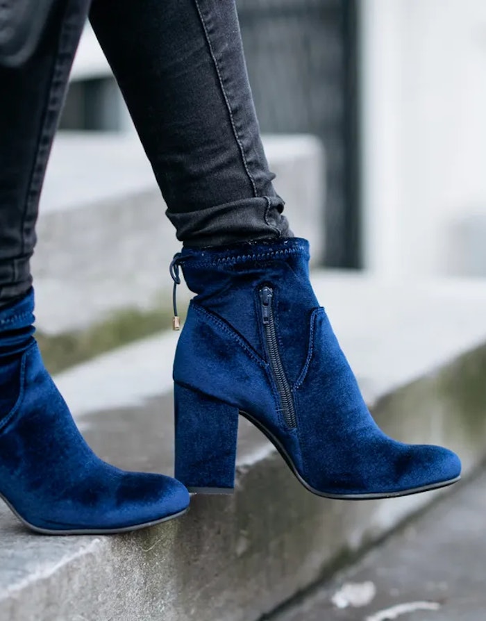 Velvet schoenen in de kleur diepzwart en navy blue zijn prima overdag naar je werk te dragen. Combineer een sneaker, enkellaarsje of loafer met een stoere blazer voor een chique business look. Ook hierbij geldt less is more!