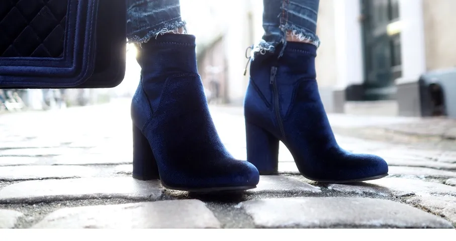 Velvet schoenen in de kleur diepzwart en navy blue zijn prima overdag naar je werk te dragen. Combineer een sneaker, enkellaarsje of loafer met een stoere blazer voor een chique business look. Ook hierbij geldt less is more!