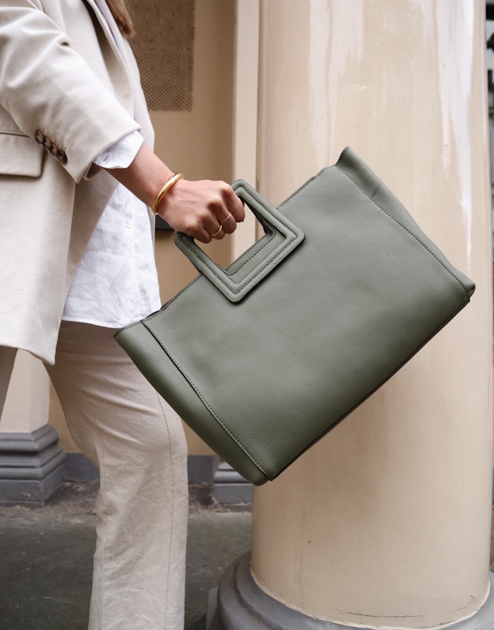 De handtas staat bij Marlien zeker in haar top favorieten. Een handtas is praktisch en stijlvol. De vaak korte band waarmee je de tas kunt dragen zorgt voor een decadente look. Tegenwoordig worden handtassen modern ingezet waardoor de tassen vaak zorgen voor nét dat beetje extra. Marlien draagt haar handtas van Manfield bij een mooi beige pak; een wide leg trouser met een oversized blazer. Ook hier weer kun je de look afstijlen met een van onze zonnebrillen en een stoere sneaker of subtiele sandaal met hak.