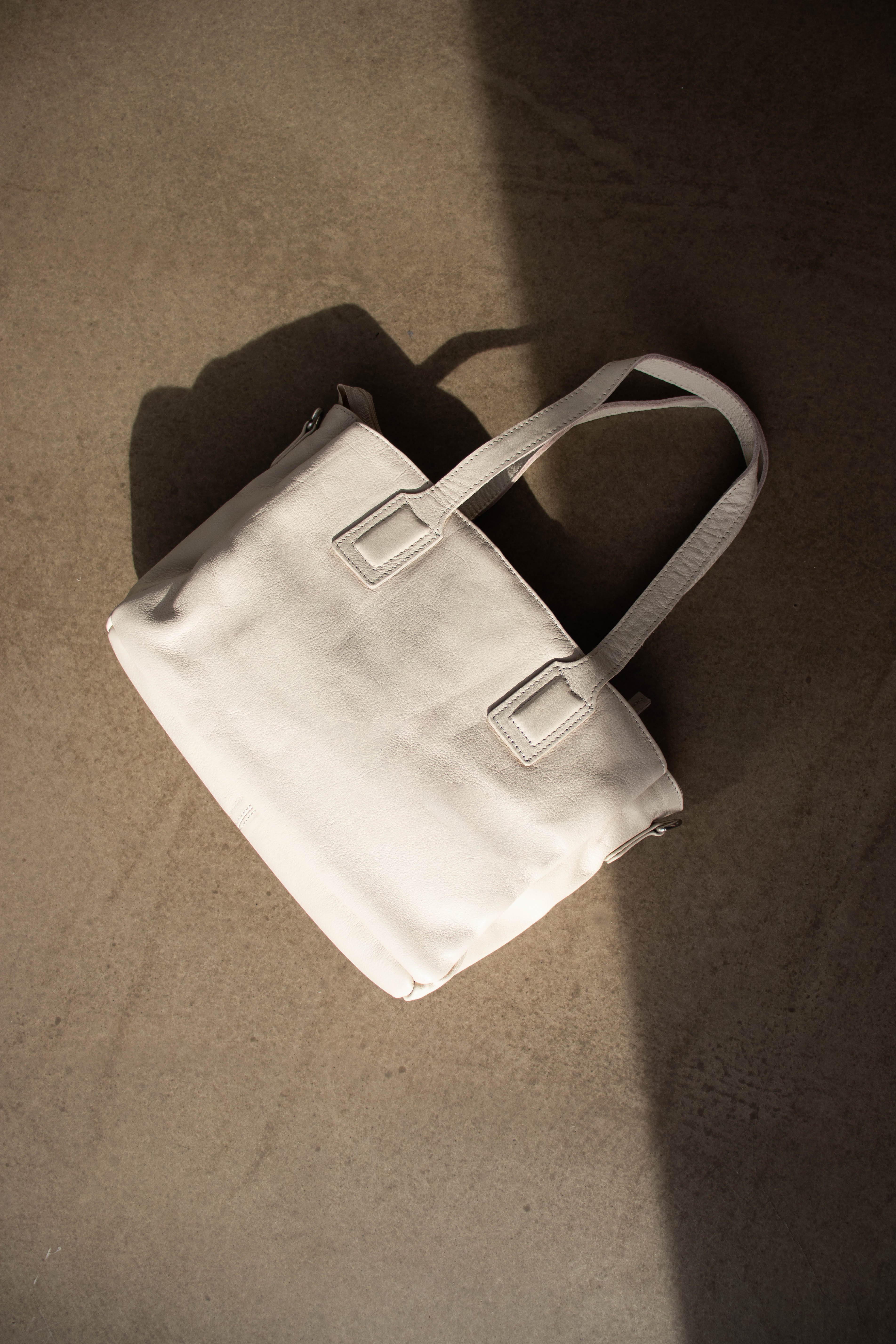Als tweede favoriet heeft Marlien gekozen voor een schoudertas in een neutrale tint. Een lichte schoudertas van leer past bij elke look. Marlien combineert deze schoudertas met een witte oversized blouse, een lichte jurk en haar all-time favourite beige sandalen met hak van Manfield. Fijne aan deze schoudertas is dat de band verstelbaar is, waardoor hij dus op verschillende manieren te dragen is; over de schouder en crossbody.