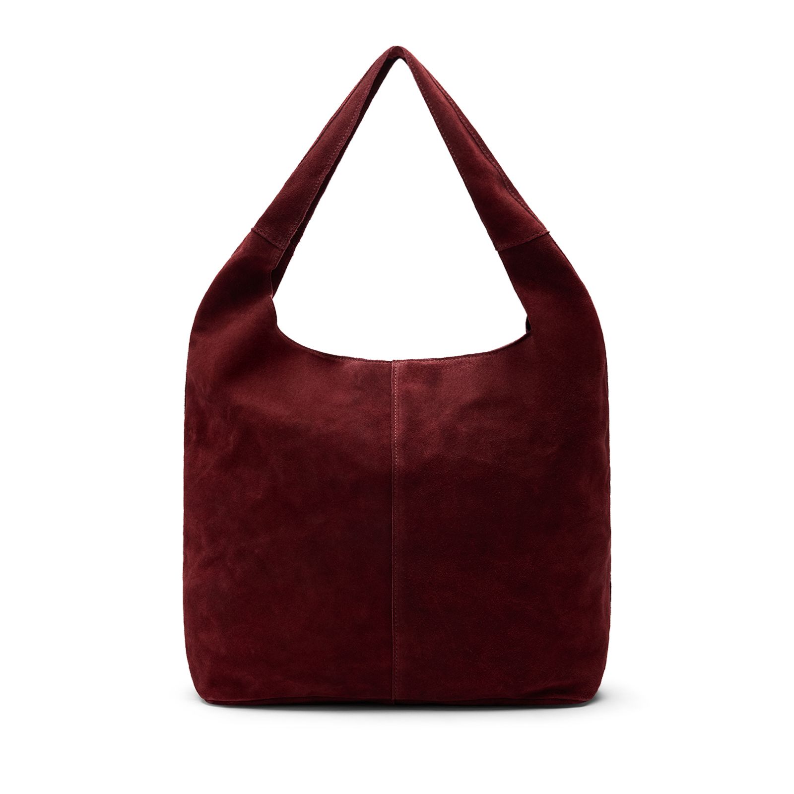 Rode suède shopper van Manfield. De afmeting van deze tas is 40x32x20 cm (BxHxD) en de tas is voorzien van een ritssluiting. We adviseren als verzorging en bescherming de suède/nubuck spray in transparant.