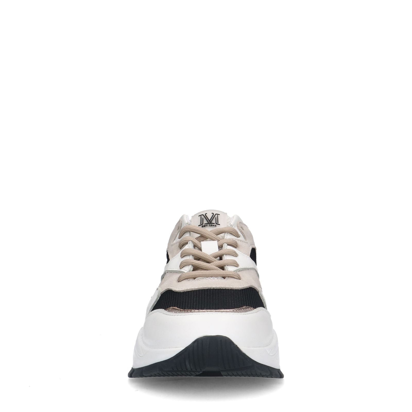 Witte leren sneakers met mesh details van Manfield. De schoenen hebben een witte zool van 4 cm. We adviseren als verzorging en bescherming de Collonil Carbon Pro of de Natural Trendspray