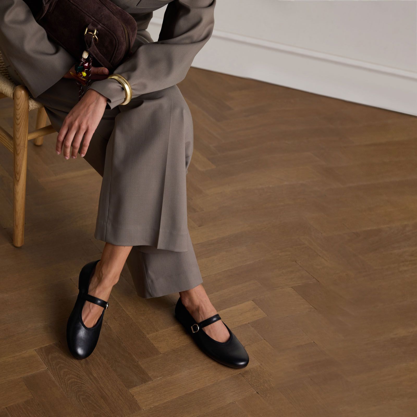 Zwarte leren ballerina's met gesp van Manfield. De ballerina's hebben een platte hak van 1 cm en een zilverkleurige gesp detail op de wreef. We adviseren als bescherming en verzorging de Collonil Carbon pro.