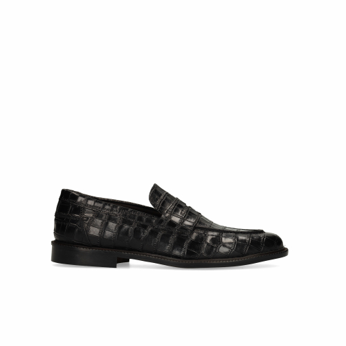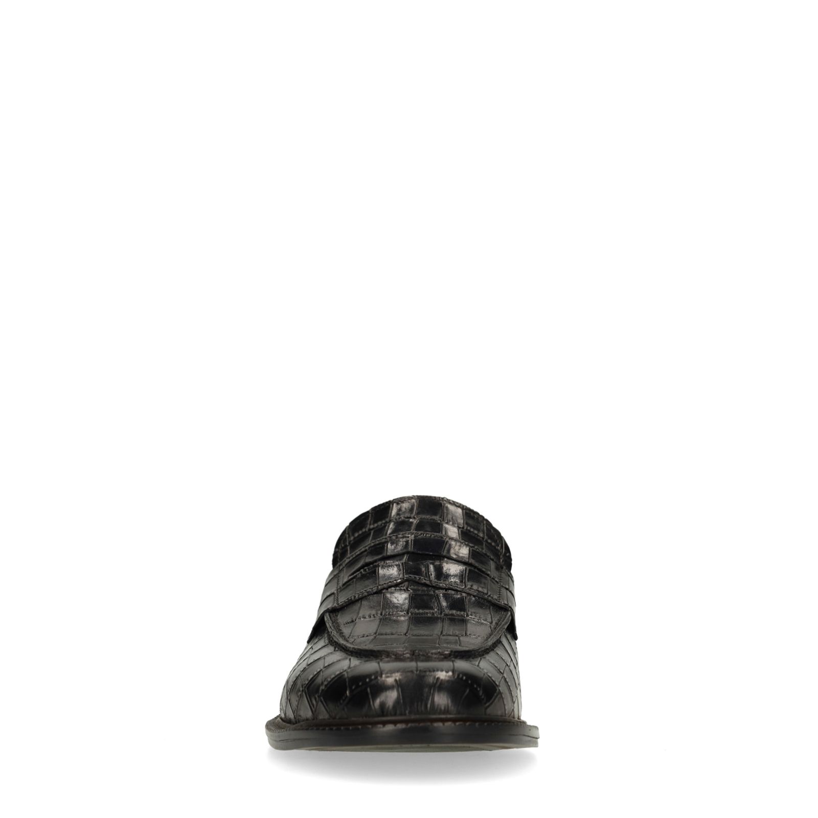 LET OP- Dit artikel is een pre order, de verwachte levertijd is begin december. Zwarte leren croco loafers van Manfield met een platte hak van 2,5 cm. We adviseren als bescherming en verzorging de Collonil Carbon pro.