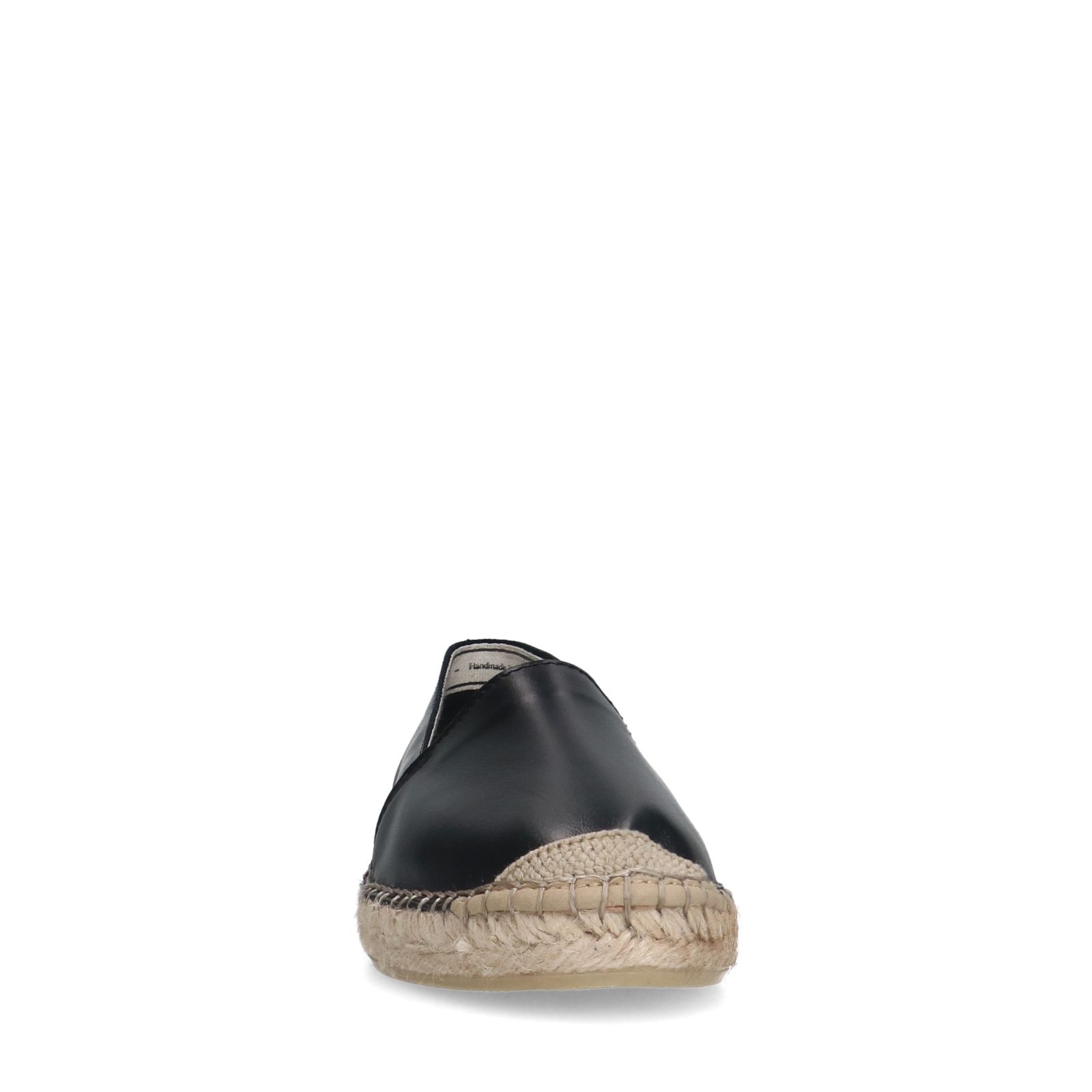 Zwarte leren espadrilles van Manfield met touwzool van 2 cm. We adviseren als verzorging en bescherming de Collonil Carbon Pro.