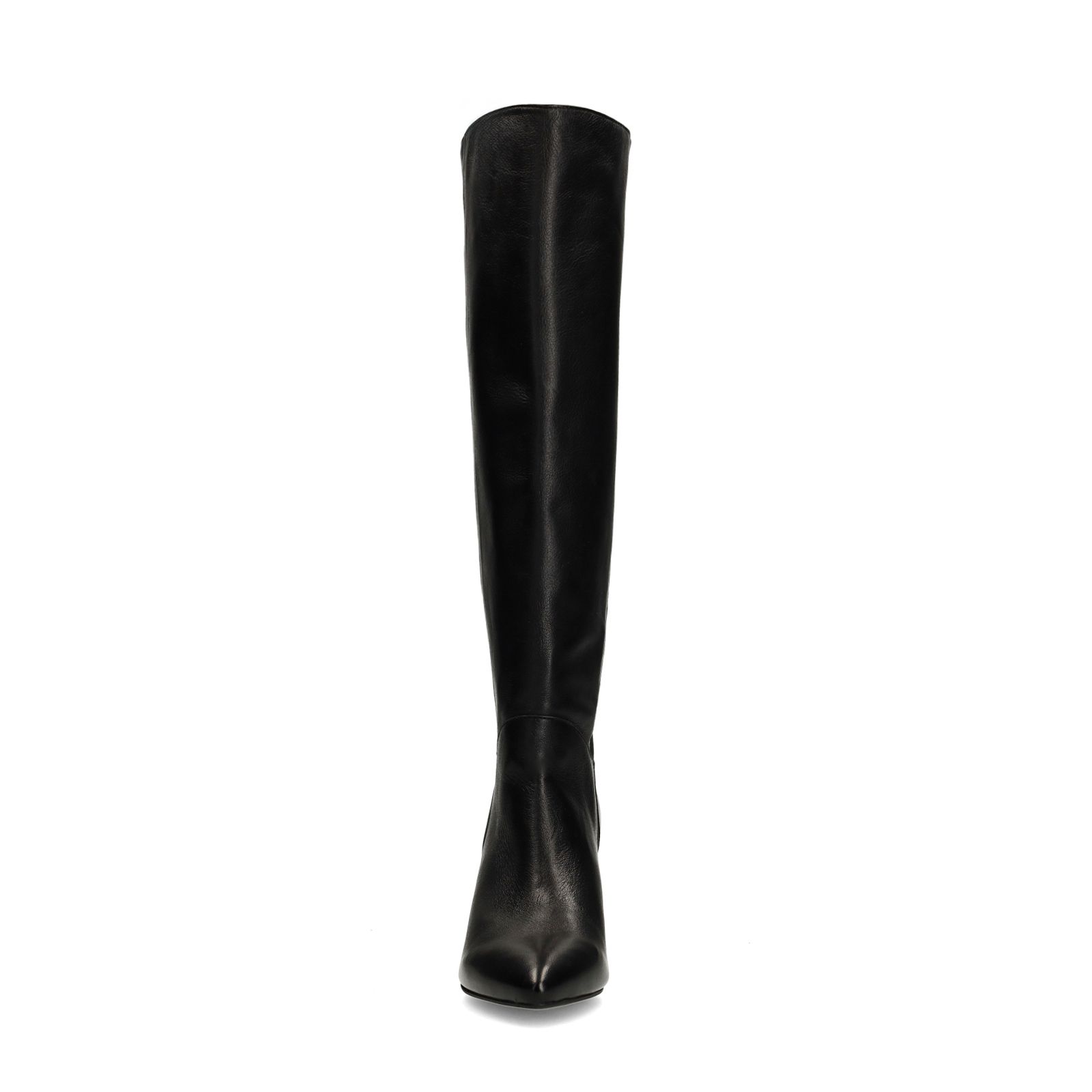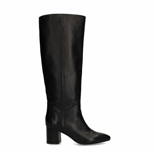 LET OP- Dit artikel is een pre order, de verwachte levertijd is eind september/begin oktober. Zwarte leren hoge laarzen met wijde schacht van Manfield. De laarzen hebben een blokhak van 6 cm en een puntige neus. De schachtlengte is 41 cm en de schachtbreedte bedraagt 43 cm, gemeten bij een maat 37. We adviseren als verzorging en bescherming de Collonil Carbon Pro.
