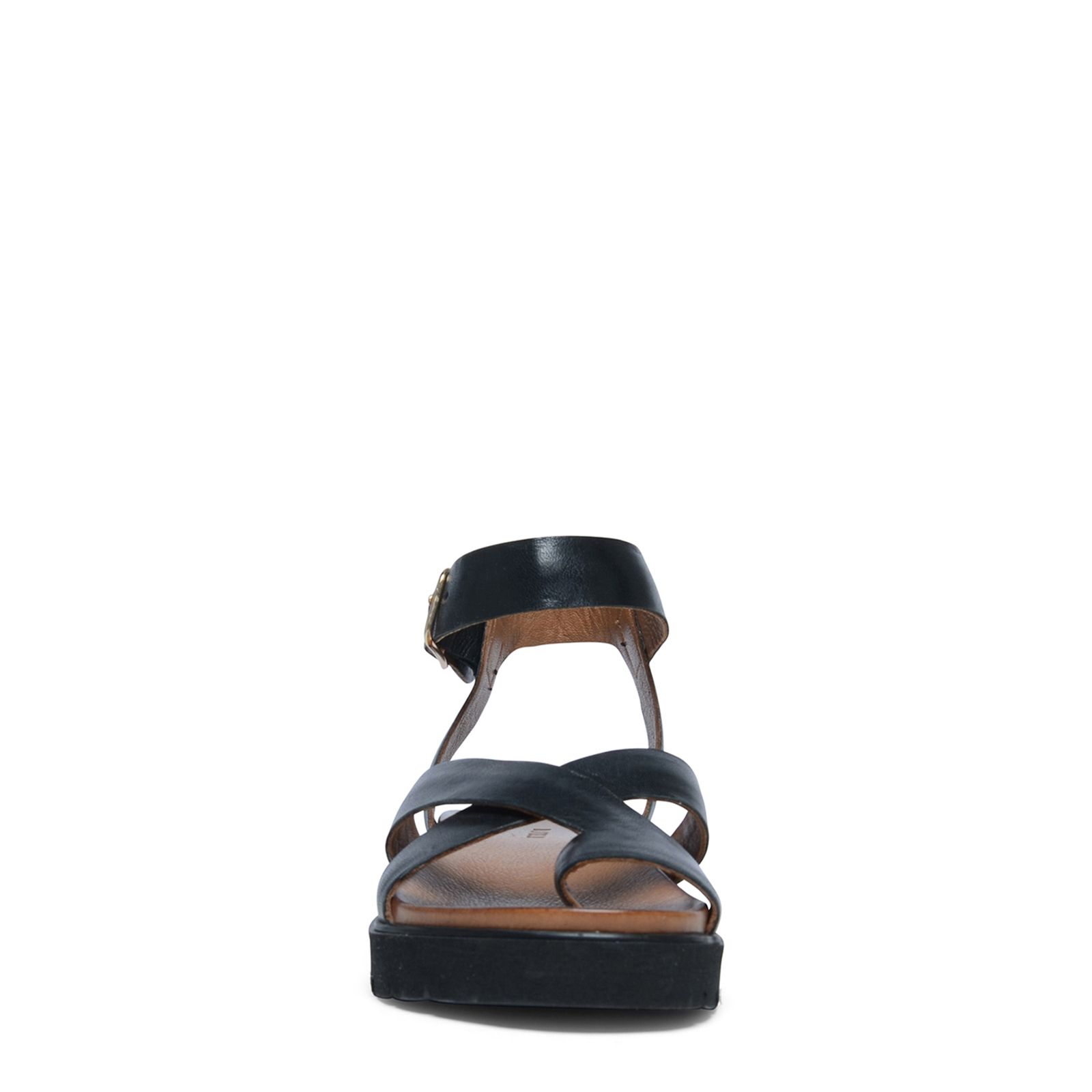 Zwarte leren plateau sandalen met gespsluiting