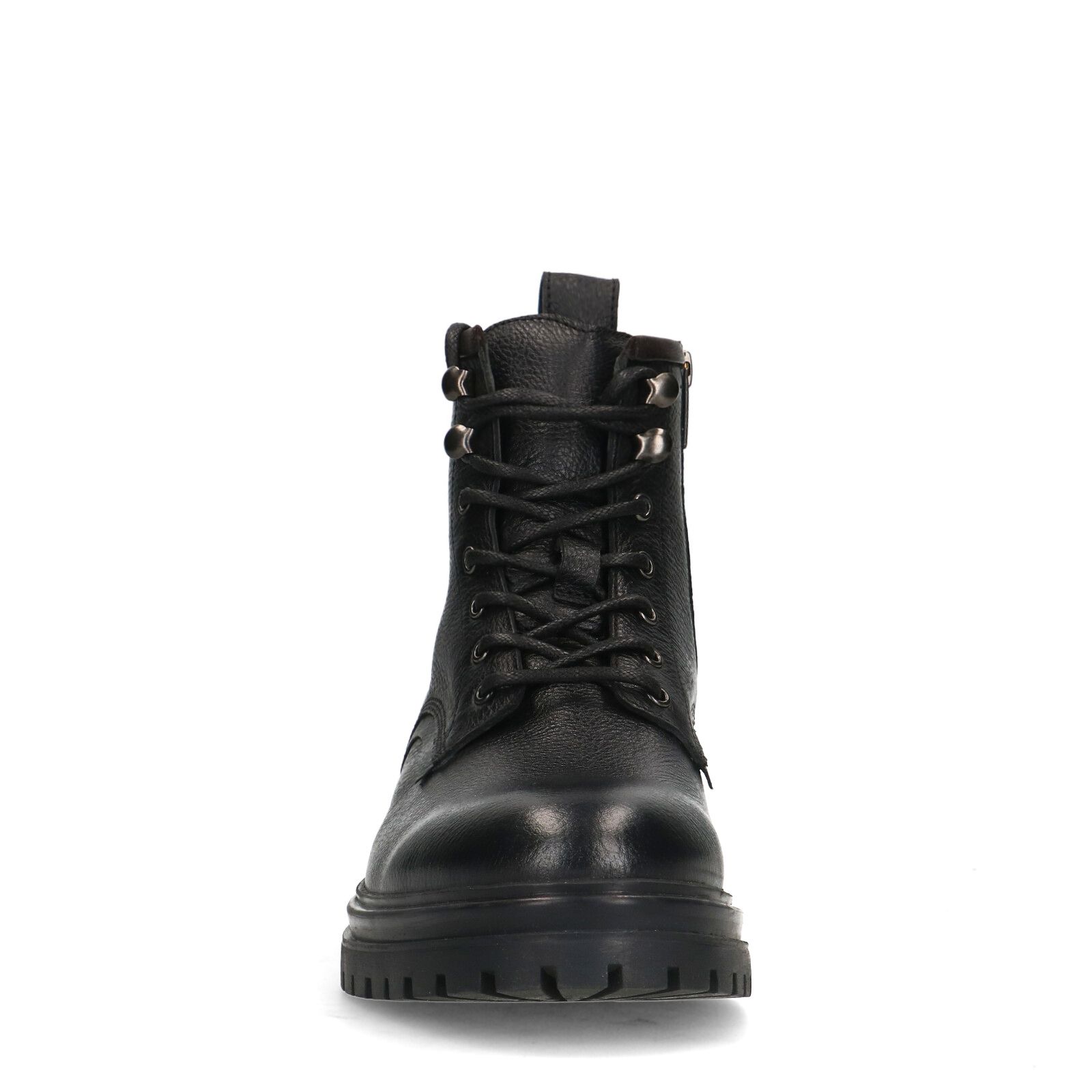 Zwarte veterboots van het merk Manfield. Deze boots hebben een robuust karakter en geven iedere outfit een stoere touch. Ze zijn aan de binnen- en buitenkant gemaakt van leer en de zool bestaat uit kunststof en rubber. Draag deze boots met een jeans en een fijne trui voor een casual outfit. Maak gebruik van de juiste onderhoudsproducten, bijvoorbeeld de Collonil Carbon Pro om deze schoenen zo goed mogelijk te beschermen.